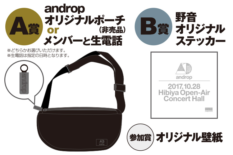 「A賞」「B賞」に当選された方は、「androp member pageブース」にて賞品の交換を行います。